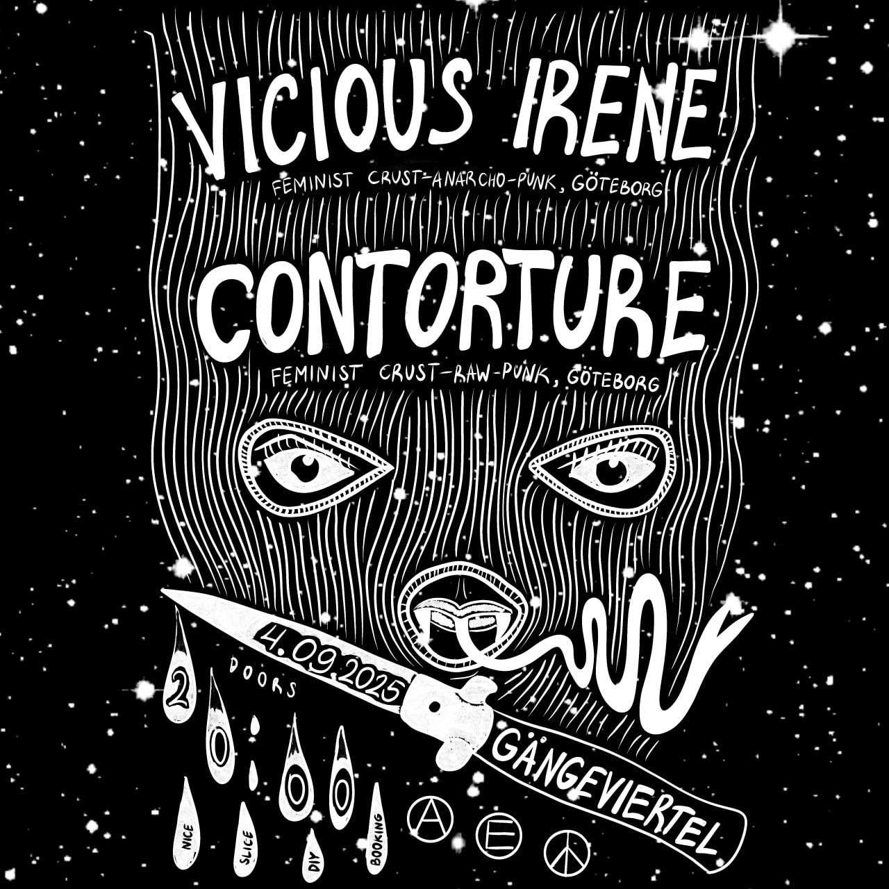 Next weekend Vicious Irene and Contorture are leaving Gothenburg for the Mangelfest at Cyklopen in Stockholm. There we will meet our friends Misantropic coming all the way down from the north. Together with Rawheads, Sekatör and YOU we will swing our fists and knock our heads to distorted d-beat…and maybe some punk disco…who knows? Come and find out!